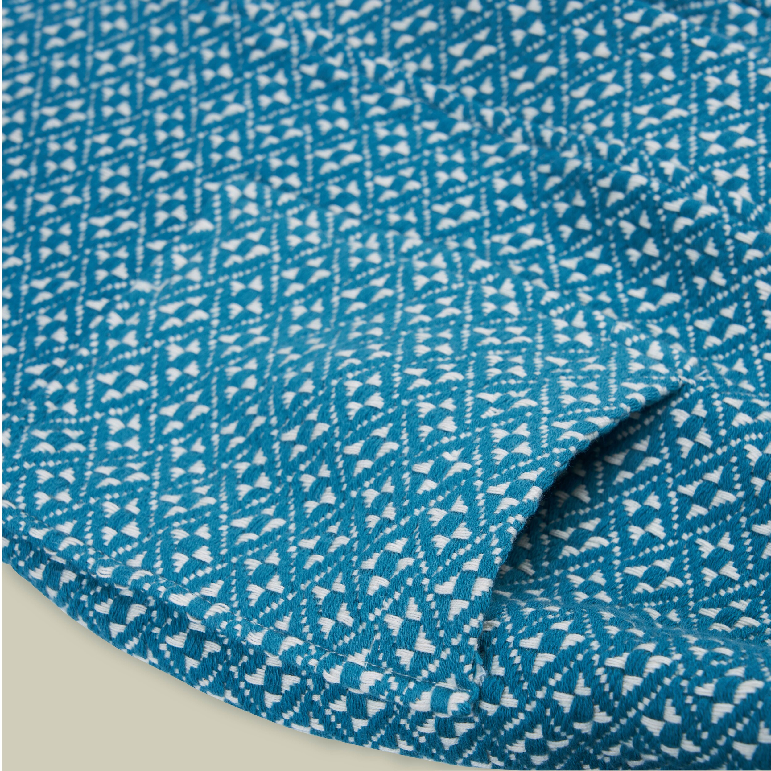 지중해 연안의 전통 직조 방식을 이어가는 소규모 아틀리에의 손길을 거칩니다. 100% GOTS 인증 유기농 면사만을 사용하며, 고유의 셔틀 직기로 원단을 완성하기까지 길게는 3개월의 시간이 소요됩니다.